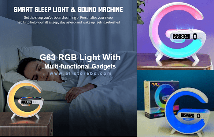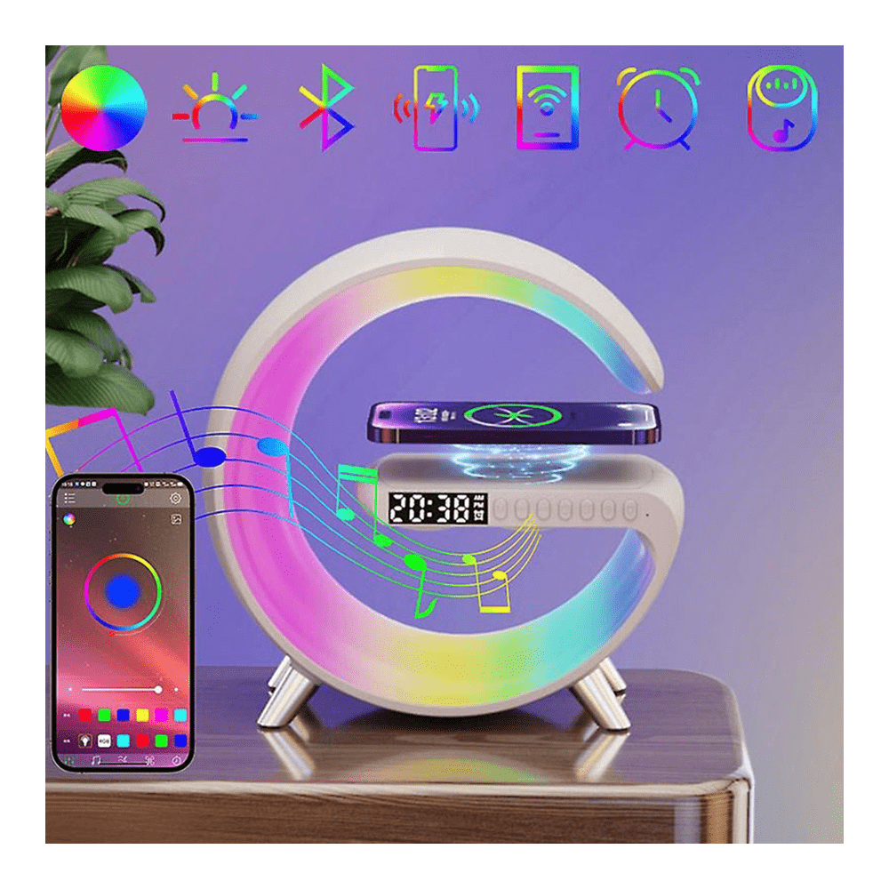 This G63 is a smart light sound machine that includes music playback with 256 RGB lighting adjustable and an alarm clock. It offers an LED screen display to show the time. It can be controlled by a mobile app. This device supported internet services such as YouTube and music. Also, it added Bluetooth version 5.2 and offers 10W wireless fast charging.